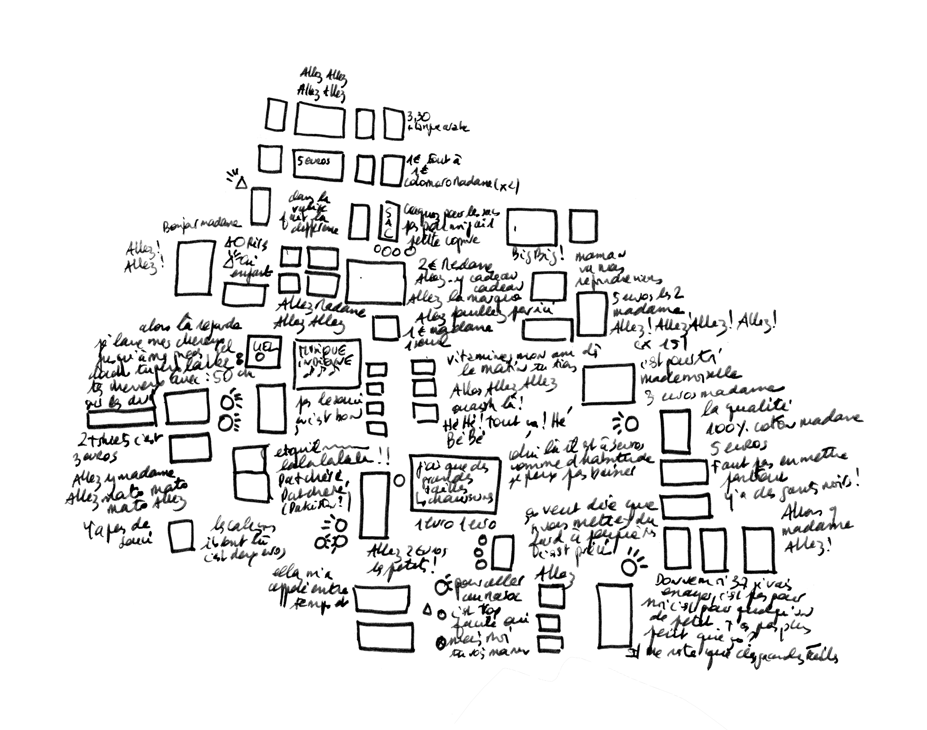 During “Parcours Est” organised by the art centres of Seine-Saint-Denis (including the Laboratoires d’Aubervillers, L’espace Khiasma, La Galerie de Noisy-Le-Sec and Synesthésie), Violaine Lochu created the audio piece, Song-lines. Her inspiration was the traditions of Australian Aborigines (for whom a song-line denotes the route between two distant points) she wandered through the extended suburbs without a map, asking people she met along the way for directions. The pieces created based on these journeys resemble oral maps, mixing geographical directions with audio textures collected along the way.